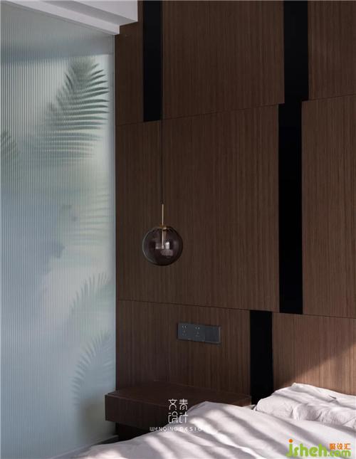 定制床頭柜將空間利用到極致,黑色木飾面線條穿插其中,看似錯(cuò)亂又整齊的關(guān)系,在這一刻體現(xiàn)的淋漓盡致。
