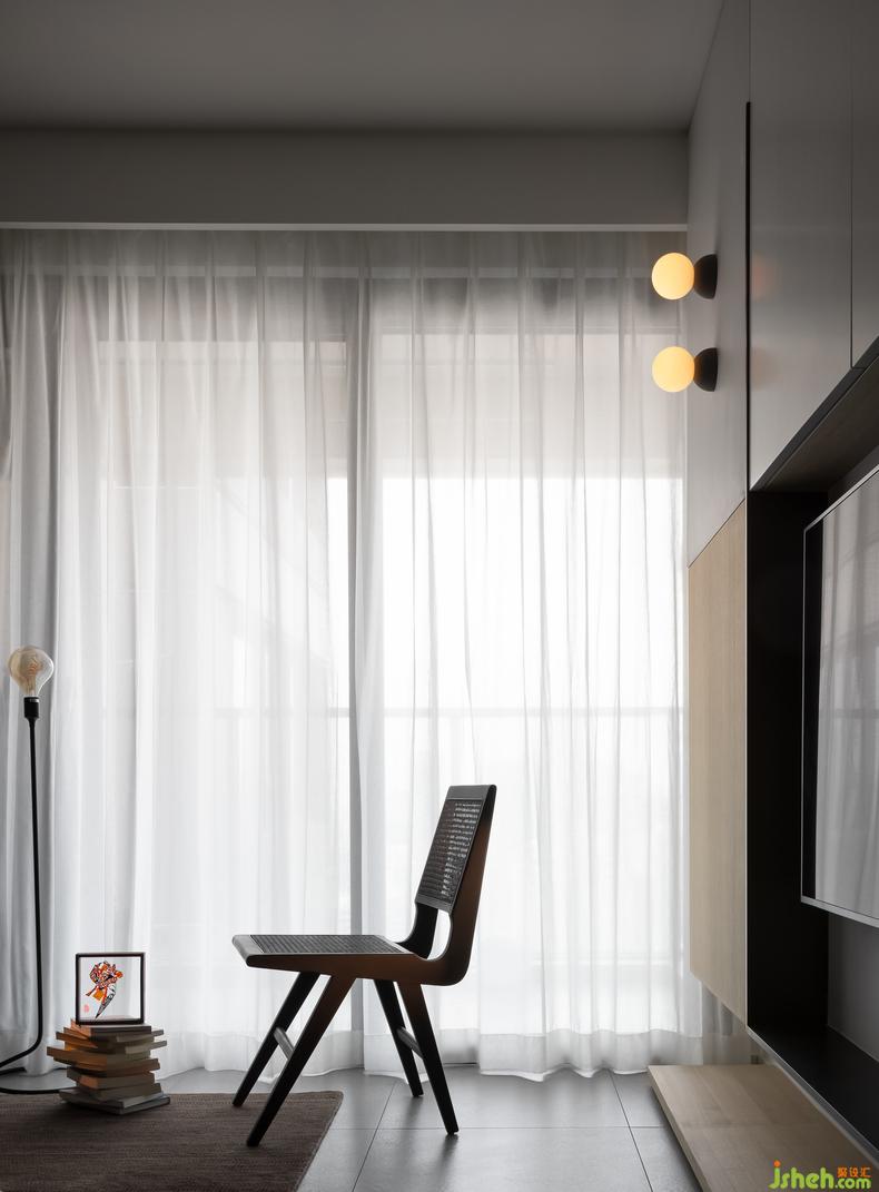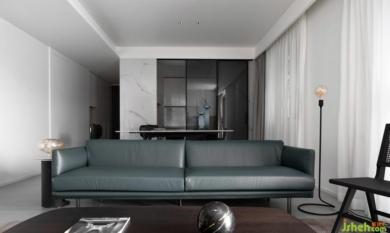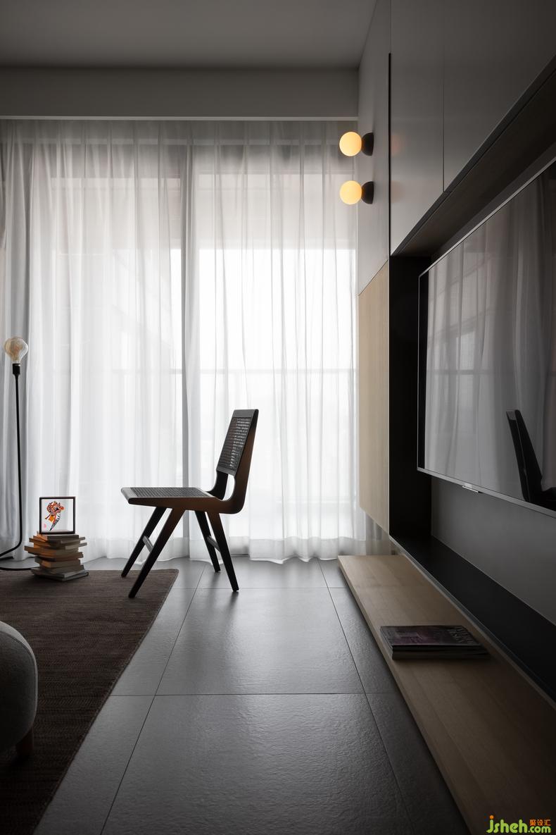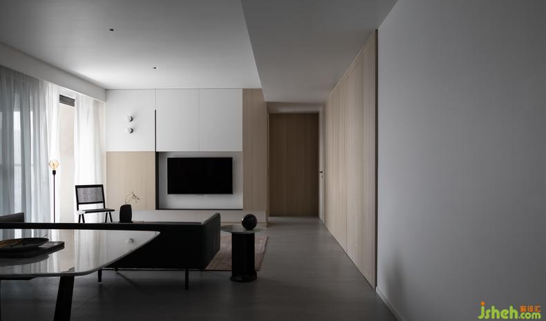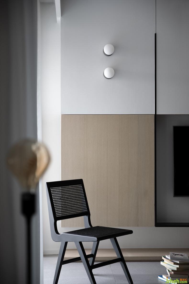 When the line of sight flows from the back of the sofa to the front, the functional mode of the scene switching is realized-"Half of enthusiasm to get along with, half of gentle companionship". The position directly in front of the sofa retains the original leisure function. Sitting on the sofa, opening the balcony door, the evening breeze slowly blowing in, bringing shining starlight, the fatigue and tension of the whole day was wiped away refreshingly.