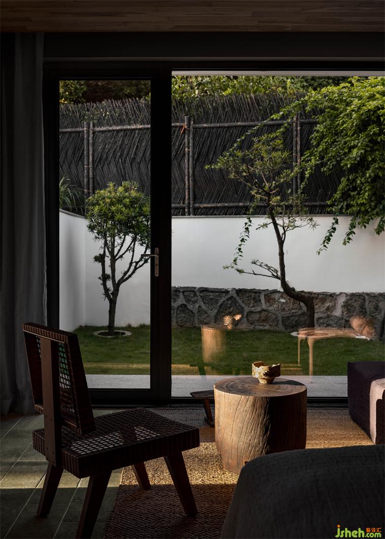 山間逸境的寬廣,深圳民宿設(shè)計給了設(shè)計師更多一點的任性。獨占一片空地,從滿山遍野的綠意,跳入另一片綠。方圓的拼接,打破泳池的固定形態(tài),將設(shè)計的趣味性外化。