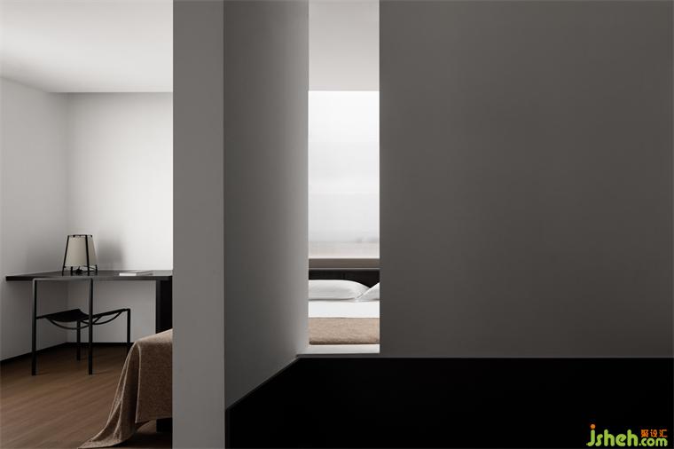 朝向陽光的奔赴是貫穿人類歷史的主題,不僅表現(xiàn)在于室內(nèi)的向外,酒店設(shè)計也同時存在于室外的向上。朝著陽光蜿蜒而上的黑色金屬梯,是陽光投射下流動的影子。它承接一種直接的溫暖,也體悟一種恒久的寓意。
