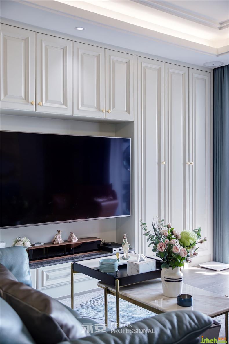 橘黃色和淺藍色的法式沙發(fā)松軟舒適,二者之間雖然色度跨度較大,但通過主題裝飾畫的映襯,室內(nèi)設(shè)計師明悅而又自然地從空間視野中跳躍出來,營造出都市生活的居家愜意