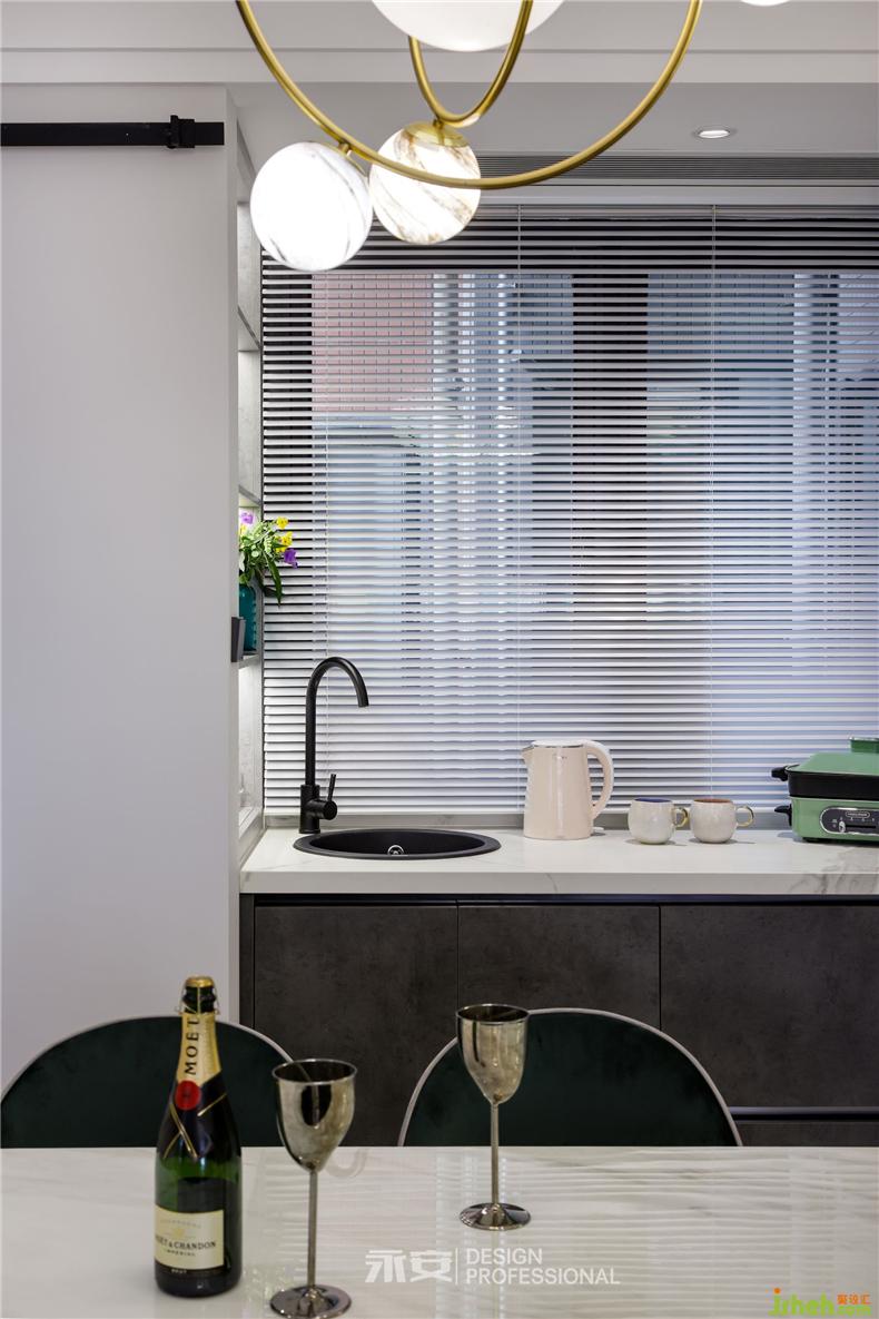 床頭是自然生趣的鳳尾竹巨幅壁畫,搭配兩邊咖啡色的飾面板,加上質(zhì)感十足的黃銅框線進(jìn)行裝點,呈現(xiàn)出一種古樸而又精致的美感。在此之下,是暗金色的被單與枕套,奢華而又舒適,善于享受生活的人自然不能在枕頭與被套上委屈自己。吊頂燈的外形猶如一團(tuán)漂浮著的羽毛,打開燈時,光線從羽毛間的縫隙中射出,整個主臥在這一縷縷光線的照耀下熠熠生輝