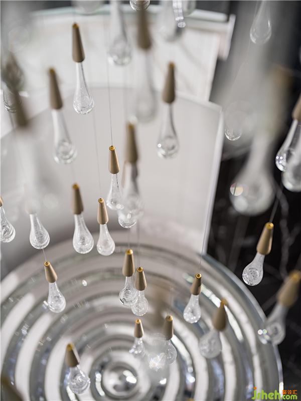 梯間藝術(shù)裝置“雨滴”,傾瀉間如流光溢憬,以近乎凌駕于世俗審美之外的靈動(dòng)空盡,訴說(shuō)著光與影的對(duì)話,傳遞著時(shí)光的生命軌跡。