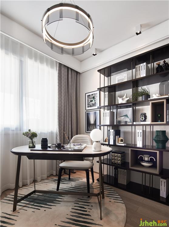 獨(dú)立書房,硬朗的金屬材質(zhì),彰顯時(shí)尚的質(zhì)感,理性的線條勾勒出前衛(wèi)的格調(diào),樣板房裝修設(shè)計(jì)簡約穩(wěn)重的黑白灰仿佛鋼琴的琴鍵,一杯咖啡,一本書,一片溫暖的陽光,奏響悠閑慢生活。