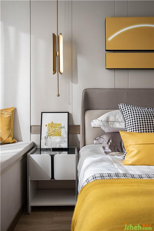 單純的色彩才能喚起最強烈的心靈感受力。在主臥空間,選取明黃色點綴,極具線條性藝術(shù)感的背景墻,時尚簡潔而不簡單的都市優(yōu)雅的氣息彌漫。體現(xiàn)居室主人精致不俗的審美品位,凝構(gòu)空間優(yōu)雅浪漫的生活情調(diào)。
