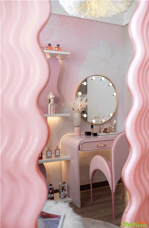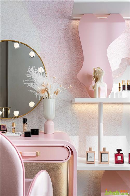 既有人間煙火的生活氣息,也要點燃感官的藝術(shù)氛圍。設計師將今年最紅的直播元素引入空間,裝飾架上大牌的香水,甘醇下氤氳著一縷花香,縈繞在空氣當中,沁人心脾。取悅自我、享受生活,這是變美的后臺,也是展示真我的舞臺。