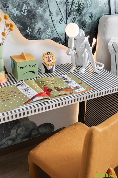 男孩對(duì)大自然有一種天生的好奇心。清晨聽著鳥的叫聲醒來,沐浴在綠葉的獨(dú)有清新中。設(shè)計(jì)師將大自然引入兒童房中,以孩童視角里的趣味界定空間格調(diào),在幾何形式與動(dòng)物元素中打造一個(gè)充滿童真的森林世界。