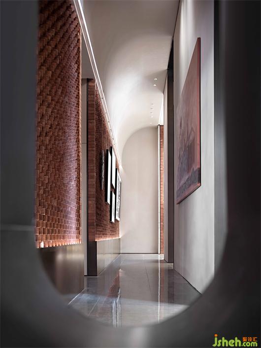簡潔的墻壁,綠色線條仿佛一圈圈年輪的肌理,與游弋的光線彼此互襯,形成一幕凸顯藝術(shù)精神的藝術(shù)裝置。墻壁猶如畫布,裝置在其中輕盈的作畫。