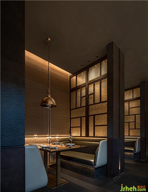 室內(nèi)燈光氛圍溫煦,起承轉(zhuǎn)合、疏密有致,老榆木和夯土在立面大量使用,前里臺州魚市餐廳設(shè)計使空間整體氛圍質(zhì)樸而富有溫度,夯土的自然肌理使其在燈光下猶如金箔帷幕,與傳統(tǒng)黛色地面呼應(yīng)形成內(nèi)斂厚重的底色,這種由原始材料帶來的精致現(xiàn)代感歸功于設(shè)計的整體把控,以及權(quán)衡材料比重和燈光渲染的綜合結(jié)果。