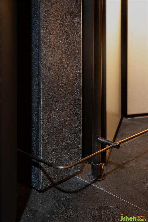 立柱、紅磚、灰色墻體、屏風(fēng)在垂直立面組合劃分了公共區(qū)?;食墙ㄖ?、民宅舊影、市井人家經(jīng)過提取和演繹并行在同一空間,疊映出一座城市最具識別性的特質(zhì),而它們在空間的水面攪動起嚴(yán)整、文雅、溫煦的漣漪,從每個人的心湖中央向無盡處蕩開,它們共同譜寫了難以分割的空間氛圍。對傳統(tǒng)和古典的重現(xiàn)皆使用現(xiàn)代材料,并在結(jié)構(gòu)和形態(tài)上進(jìn)行了簡化和藝術(shù)化重塑,使在時間和意義上都相距甚遠(yuǎn)的元素能夠和諧共處。