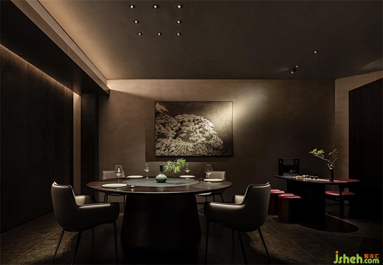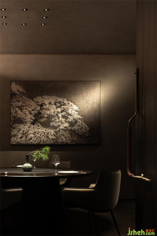 吧臺(tái)、茶臺(tái)等區(qū)域構(gòu)建出微景別的自然,北方冷空氣里的蒼勁生機(jī)與文人書(shū)房的微縮園林皆有呈現(xiàn),這些自然的虛構(gòu)空間將食客的意識(shí)推出城市、推向自然。它們留白的想象空間比極盡還原的山水更貼近臻選店深遠(yuǎn)含蓄的價(jià)值傳達(dá)。