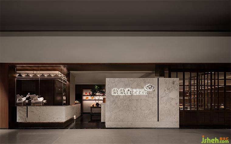 火鍋設(shè)計門頭是餐廳和skp間的物理界面,厚重的白色石材低于天花,這面如影壁或屏風(fēng)意向的LOGO墻稍稍遮擋了內(nèi)部,同時拉出了空間層次,它統(tǒng)領(lǐng)了內(nèi)部的體驗:在有限空間里,各區(qū)域片段的感官組成印象的疊加,平??臻g因為韻律變化而妙趣橫生。