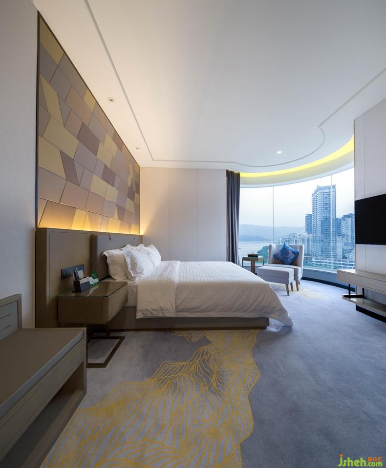 整體設(shè)計追求簡潔而時尚,明快的背景色彩與柔和燈光效果的協(xié)調(diào)則讓客人倍感舒心。長長的客房通道,在地毯的陪襯下在靜謐中流淌著華麗與舒適。在客房通道一旁還有一群候鳥,就好似在深圳紅樹林里每年都會有一群候鳥從西伯利亞飛回來過冬的場景。在整個客房通道空間光線和景色的融合,帶給人親近自然的感受,使視覺上具有通透感。