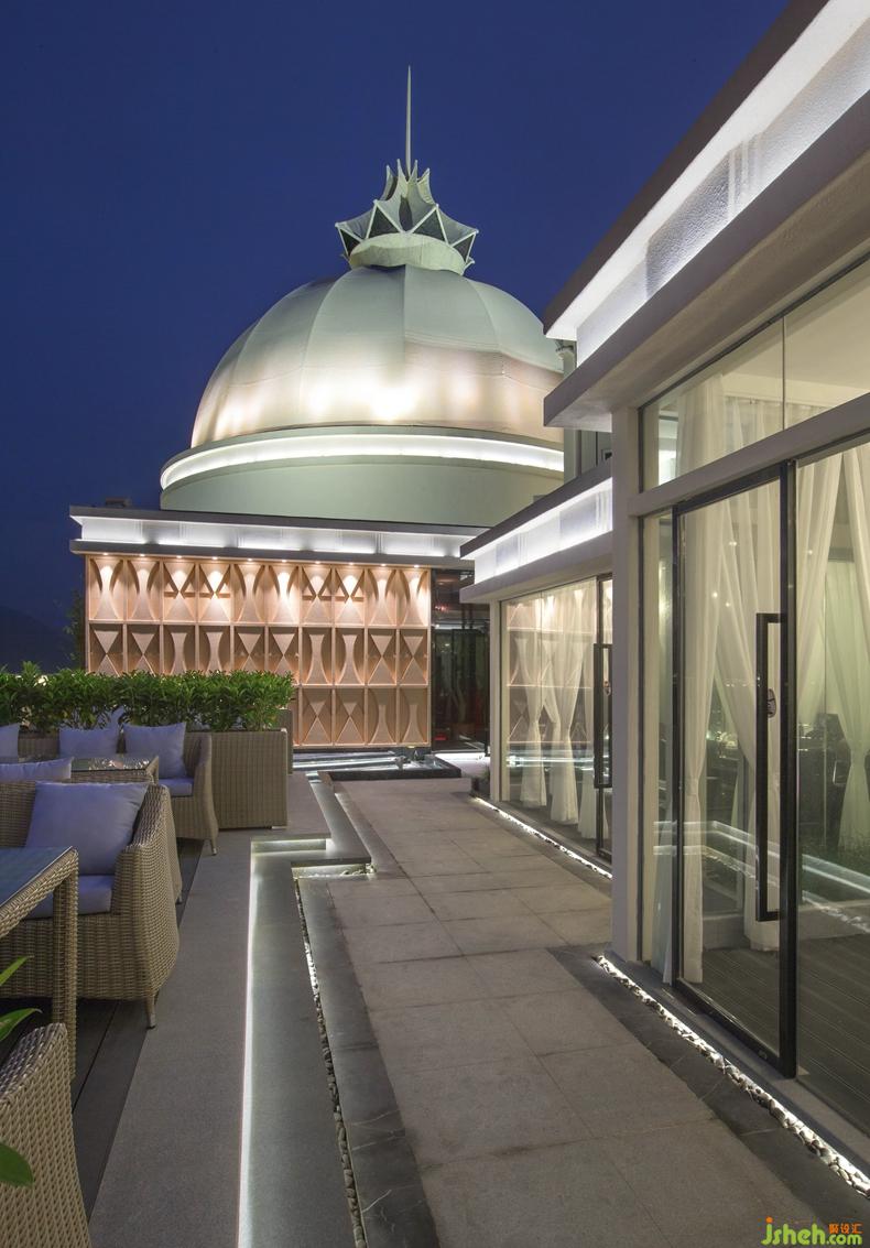 酒吧位置在酒店頂樓19層面朝大海,外觀以歐式城堡呈現(xiàn) ;這是酒吧戶外的一部分。設(shè)計(jì)公司