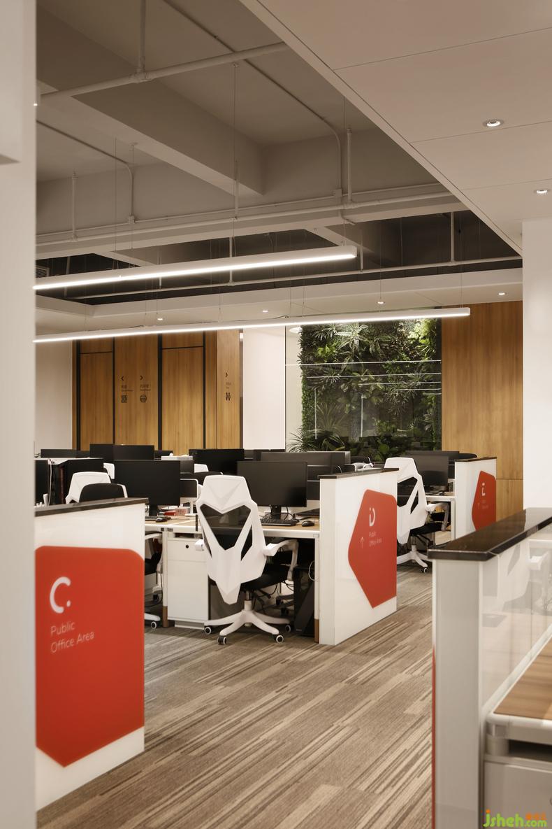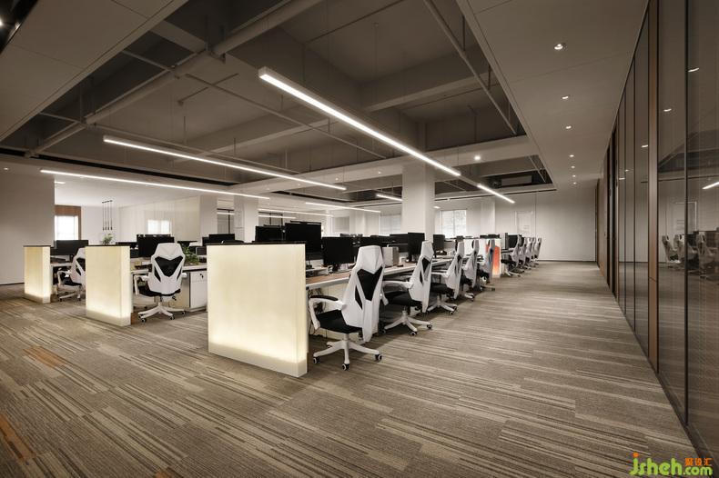 公共辦公區(qū)面積較大,布局相對(duì)更加嚴(yán)謹(jǐn),設(shè)計(jì)師特別運(yùn)用英文字母劃分了不同區(qū)塊,整潔有序,辨識(shí)度更高??臻g動(dòng)線在嚴(yán)謹(jǐn)布局之下更趨合理,各區(qū)域之間的通達(dá)性也更便捷。空間的導(dǎo)視標(biāo)識(shí)亦是整套設(shè)計(jì)的亮眼之處