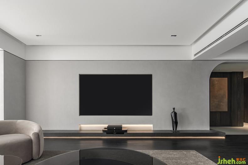 電視背景聯(lián)合玄關(guān)以及用餐區(qū)的一個大塊面