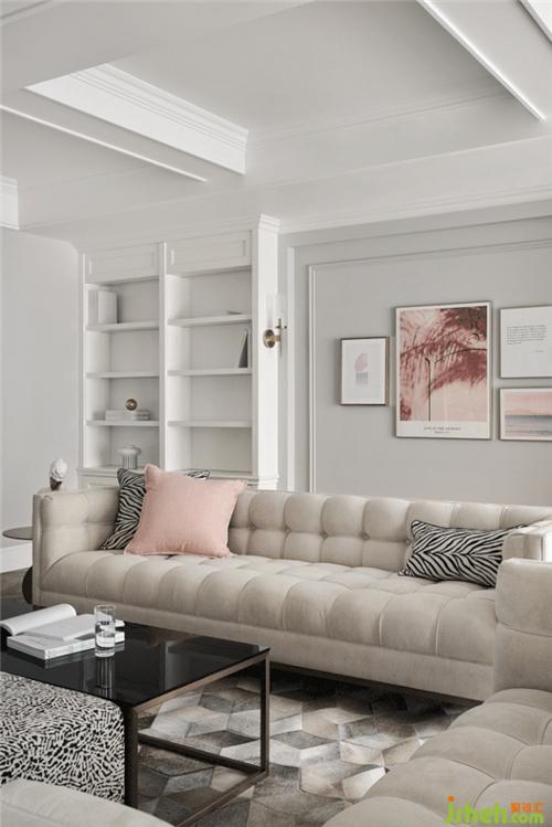 The white cabinet is placed in the open living space, while we introduce light, so that the whole space is covered with a soft halo. In the afternoon, the owner takes a book from the bookshelf, drinks a cup of coffee, and forms a play line for the children around the sofa, which is convenient and interesting.