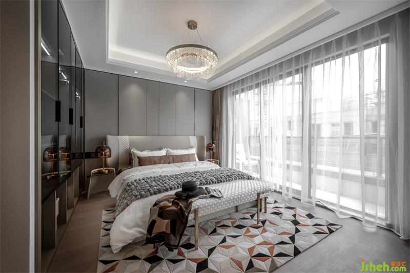 樣板房設計通過對燈光色溫的精準把控,將時光感暈染在床畔?;野咨じ?,搭配菱格肌理時尚優(yōu)雅,床體靠背如展翅的羽翼,大氣造型帶給人滿滿的安定與溫馨。金屬作為輕奢的靈魂之筆在首尾點綴,每一處都彰顯著戶主卓然的生活品味。