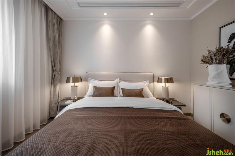 老人房和客臥,均以柔和的米白作為底色,強調(diào)舒適的睡眠功能,并運用了大地棕色為空間烘托沉穩(wěn)與暖意,歲月翩然,余下便是過盡千帆后的釋然與從容。