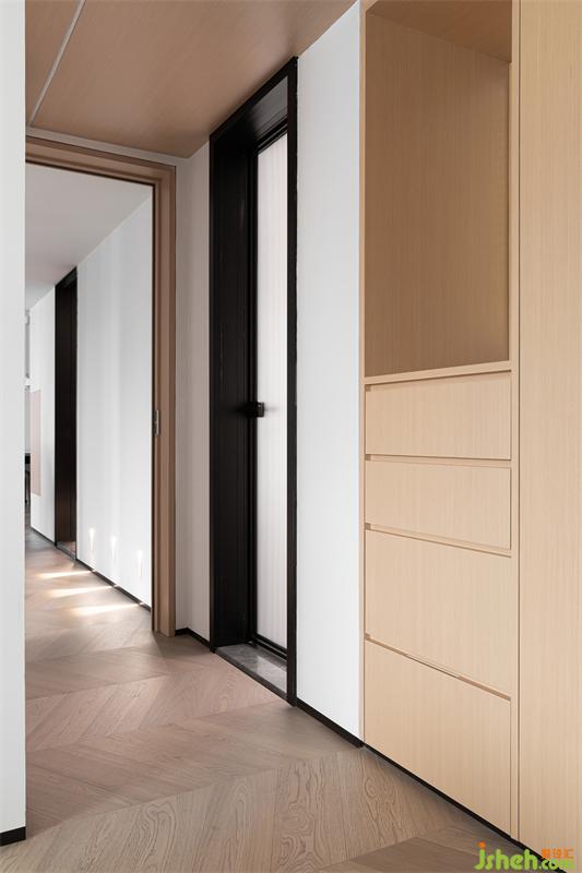 開敞靈活的布局使原本狹長擁擠的過道空間得以釋放