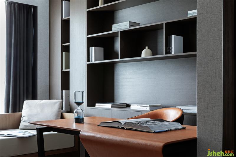 惠州家居設(shè)計將書柜做整體內(nèi)嵌,增大空間利用率,同時立面效果更加平整簡潔。有充足的藏書空間、有舒適的坐榻 、有書臺,提供一個宜人的空間,滿足業(yè)主日常的在家辦公及閱讀休息的功能訴求。