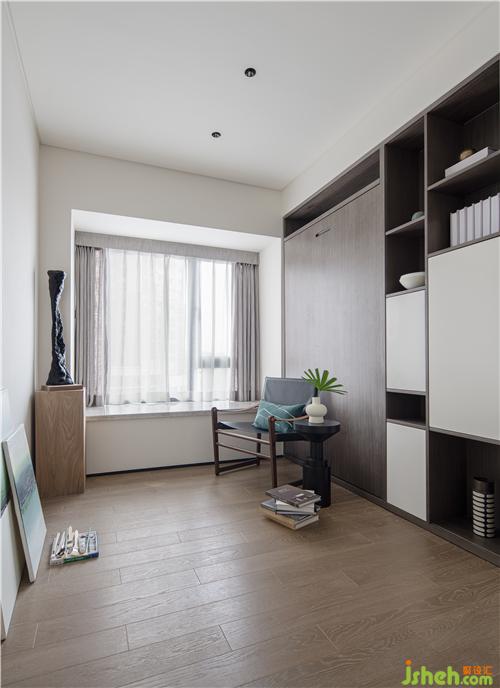 而家中的茶室則正是靜心養(yǎng)神的最佳場(chǎng)所。設(shè)計(jì)師在此選擇了沉靜而略帶暖意的色彩,樣板房設(shè)計(jì)并通過(guò)線條簡(jiǎn)潔的家具來(lái)妥帖安排了功能。深色木質(zhì)茶桌搭配低坐姿的團(tuán)墊有種溫和的踏實(shí)感。于是,只在這一方茶空間中,讓我們一起來(lái)享受一杯茶的時(shí)間,白日的煩擾就這樣被過(guò)濾成身心的自由。