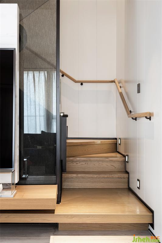這是個秘密花園,居者在這里卸下疲憊,完成自我對話。迂回曲折的樓梯仿佛一個時光通道,連接著兩個氣質(zhì)相對的空間,也仿佛預示著外界的光怪陸離與尋覓自我的寧靜與釋然。