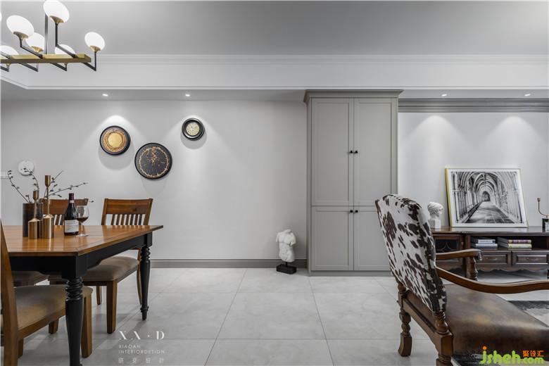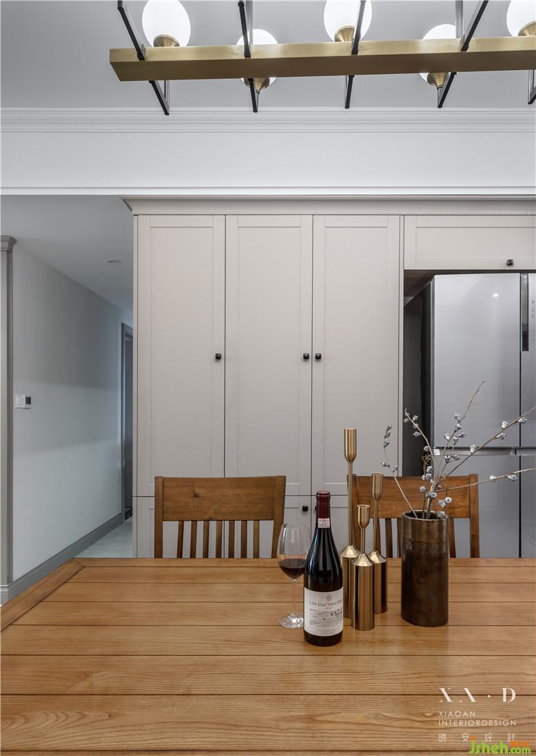 將父母房原本的贈送面積納入房間,過道設(shè)計的裝飾展示柜和父母房衣柜背靠背,節(jié)省了空間,這樣父母房間的實際使用面積也能達(dá)到一個舒適狀態(tài)。