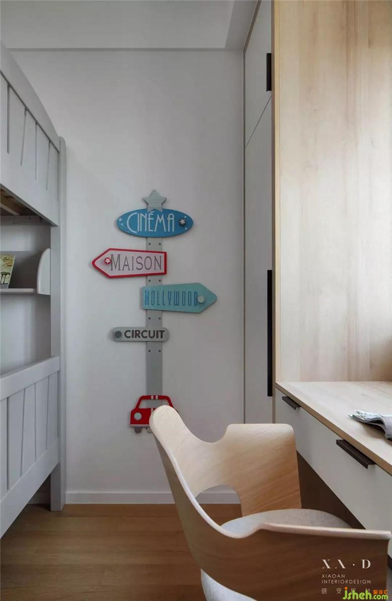 兒童房設(shè)計了上下鋪,因為兩個寶寶還小,所以上下鋪是最好的選擇,使得兩個孩子有更多的接觸時間,增加彼此的感情。