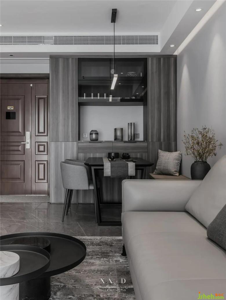 ▲ 裝修公司將黑灰色系大量運(yùn)用到餐桌空間,讓這片區(qū)域變得低調(diào)又沉靜。