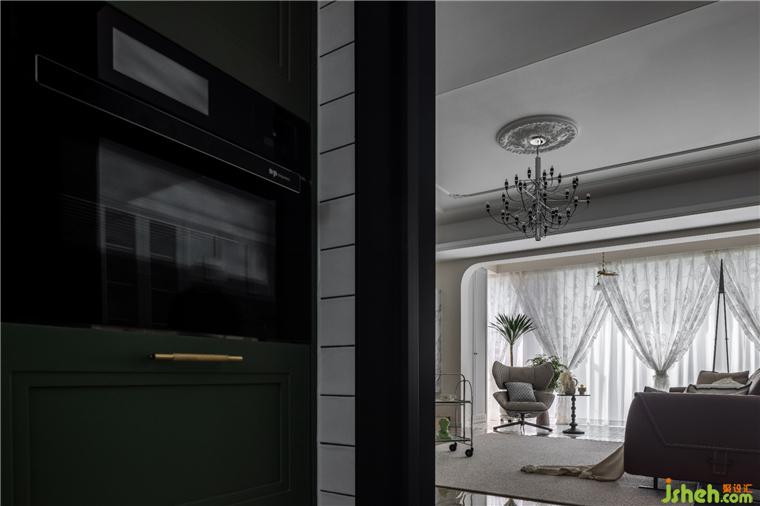 “喜歡敞亮的、能容納特別多家人一起做飯的廚房,真的很有家的感覺?!盪型布局廚房完美切割了各個(gè)功能區(qū),天鵝港豪宅設(shè)計(jì)讓空間變得合理有序。以白色挑動墨色與森綠,色塊間搭配的比例恰到好處——明朗,自如,又詮釋著法式的優(yōu)雅。