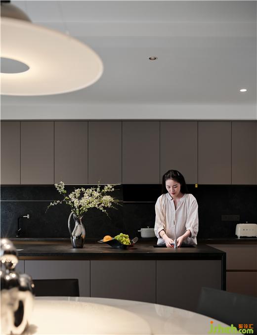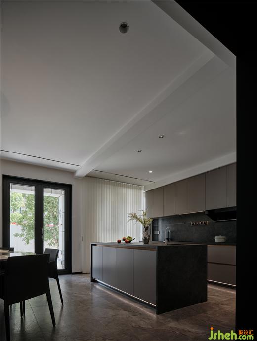 鹽城私宅裝修設(shè)計(jì)選用穩(wěn)重色調(diào)的島臺(tái)作軟隔斷,放任橫向線條的動(dòng)勢(shì)漸次勾勒出空間層次,善用無(wú)主燈設(shè)計(jì)擴(kuò)展縱向尺度的疏朗氣質(zhì),引入自由體感。凹凸結(jié)構(gòu)與色調(diào)變化同步,衡量周圍環(huán)境的特征,讓人將時(shí)光傾注于熱愛(ài)的美食。