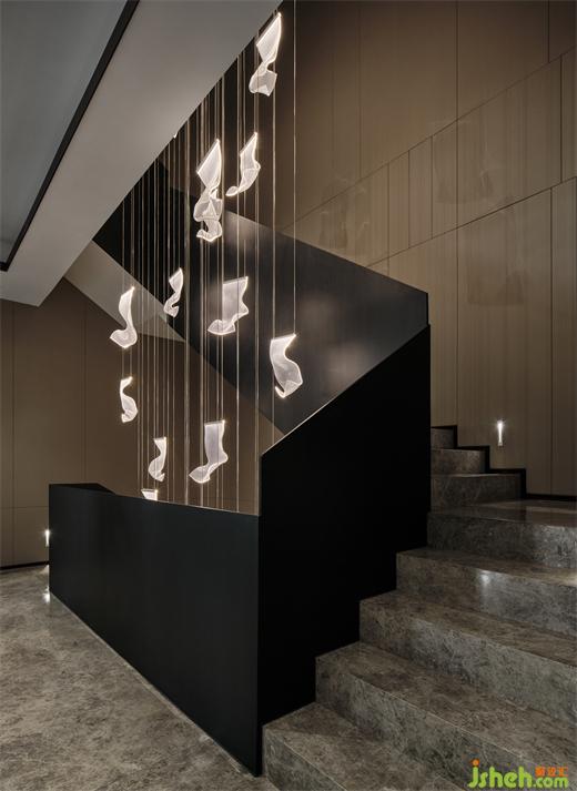 點(diǎn)狀光體,以疏密有道的形式,顯露出不同場(chǎng)域的特質(zhì),引入海涵書(shū)卷的概念,借用簡(jiǎn)筆形態(tài)綻放靈動(dòng)的序列感,拉伸了上下結(jié)構(gòu)的深度,豐富了轉(zhuǎn)折區(qū)域的趣致。