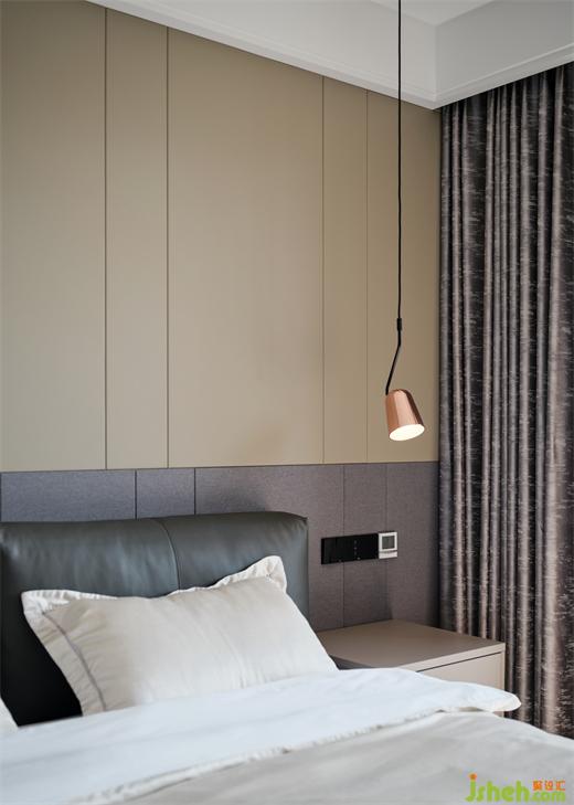 推門而入,陽(yáng)光溫暖著屋內(nèi)的陳設(shè),瞬間擊中了心靈,悄然散發(fā)的光澤,模糊了室內(nèi)外的感知關(guān)系,傳遞出親切感與優(yōu)雅感。大平層裝修設(shè)計(jì)憑借上下分割的手法,塑造了床頭背景的碰撞感與層次感,與窗框輪廓達(dá)成了延續(xù)之美。