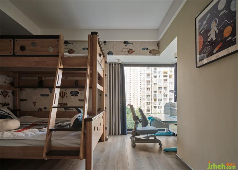大平層裝修設(shè)計(jì)依據(jù)空間尺度特征,擺置原木高低床,劃分休憩區(qū)與書(shū)寫閱讀區(qū)。在細(xì)節(jié)處,甄選壁紙,縈繞出童真趣味,點(diǎn)綴探索太空的藝術(shù)畫作,在生活中呈現(xiàn)出一家人對(duì)孩子的無(wú)限關(guān)愛(ài)。