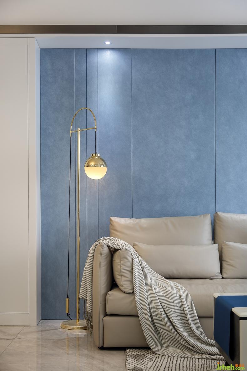 客廳的沙發(fā)背景墻采用了雅致的藍色硬包,與電視背景墻的白色形成強烈的視覺沖擊,使空間富有層次。在偏冷的基調(diào)上,恰到好處的是水晶球般的落地?zé)?,暖暖的光線,暈開了空間的冷調(diào),將家的溫度絲絲沁入其間。