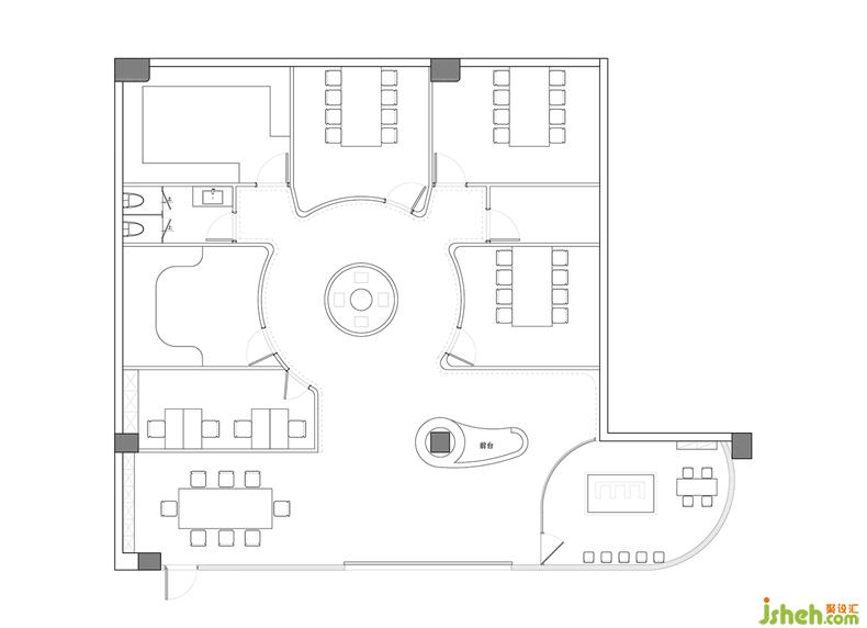 前臺利用燈光的巧妙設(shè)計(jì)營造了空間的科技感,就像柜體及柱子上的燈帶,弱化了本體的體量感,增加了視覺上的通透感,更凸顯半透明的質(zhì)感和光感。設(shè)計(jì)公司