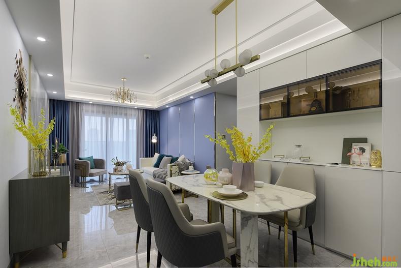 餐廳和廚房之間用活動(dòng)移門對(duì)空間進(jìn)行劃分,獨(dú)立便捷又完整。此外,設(shè)計(jì)師巧妙的利用墻面,將餐廳的展示、儲(chǔ)藏空間融為一體,不僅能適當(dāng)減輕廚房的收納壓力,還能當(dāng)做備餐區(qū),提高了空間的利用率。