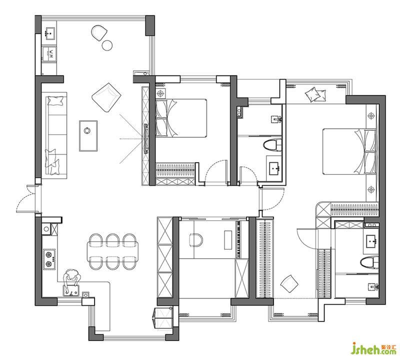 在裝修過程中,我們很容易發(fā)現(xiàn),當(dāng)業(yè)主托付真實信任,設(shè)計方也及時予以回應(yīng)和支持,其結(jié)果必然是收獲驚喜的。哪怕是衛(wèi)生間區(qū)域,磚、潔具、鏡柜的選擇都經(jīng)過了深思熟慮,使用起來更舒適,視覺上也十分美觀。