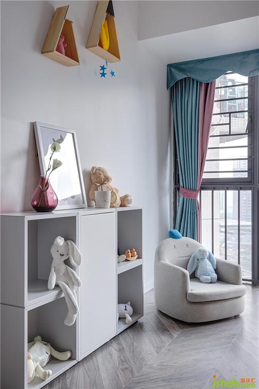 精巧的白色成品柜給了孩子放書(shū)和玩具的空間,自己獨(dú)處時(shí)還能躺在專屬小沙發(fā)上看看書(shū)、自由玩耍。墻面的裝飾收納也不容小覷,放上三兩雪山形置物架,其內(nèi)擺上幾個(gè)小玩偶,既是裝飾又是收納,好看又實(shí)用。