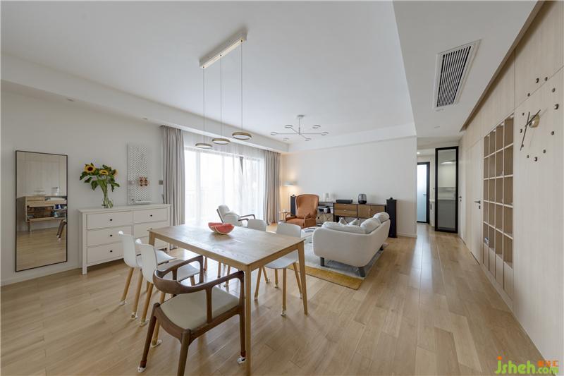 素雅的白色和溫潤的木色構(gòu)成了空間的主旋律,它不同于現(xiàn)代風(fēng)時(shí)尚硬朗的感官體驗(yàn),憑借更溫馨舒適的姿態(tài)出現(xiàn),讓人倍覺安心。