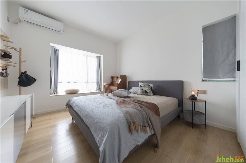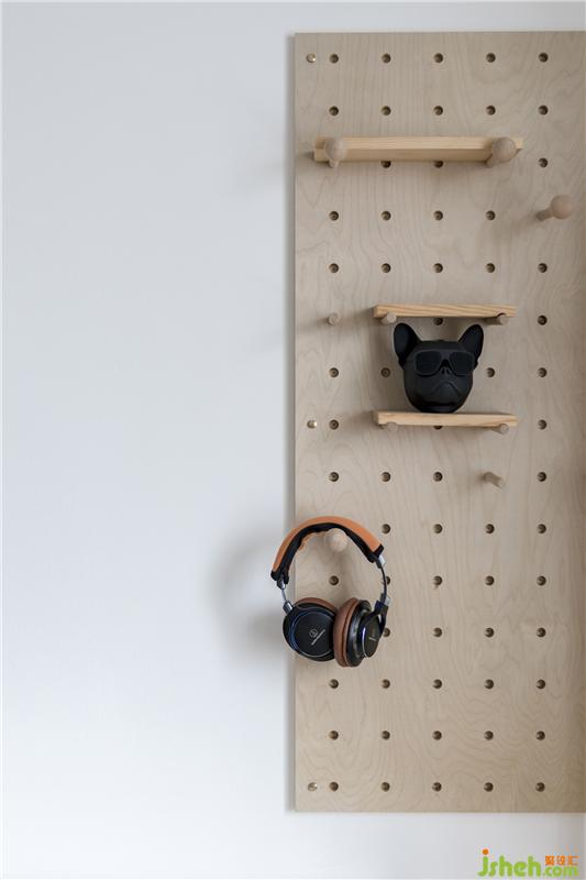 臥室延續(xù)簡潔干凈的基調(diào),原木色的地板、素白色的墻面、暖灰色的家具以及同色系的床品和窗簾,和諧簡約又不失設(shè)計(jì)感。床尾洞洞板的使用也格外有趣,不再是壓迫空間式做滿到頂?shù)囊鹿?,而是以更自然、靈動的姿態(tài)出現(xiàn),滿足實(shí)用功能的基礎(chǔ)上,最大程度釋放空間感。