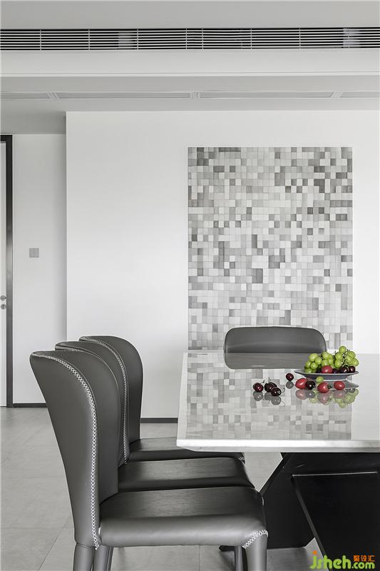 皮質(zhì)餐椅線條優(yōu)雅而現(xiàn)代,大理石餐桌簡潔而不失質(zhì)感,搭配中性色馬賽克掛畫,輕松營造出精致優(yōu)雅的就餐氛圍,為生活注入了藝術(shù)美感。