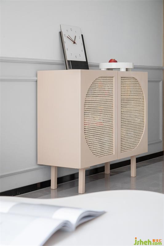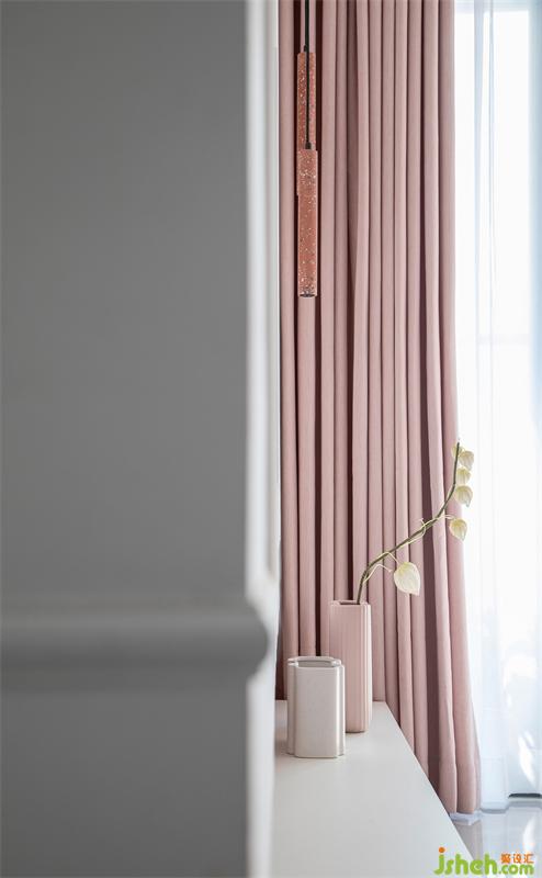 高級灰環(huán)抱式布藝沙發(fā)搭配臟粉色烤漆邊幾,溫柔可愛的氣息撲面而來。臟粉色有一種跨越年齡的輕熟魅力,于高級灰和白色之間點綴,使空間呈現(xiàn)高級的甜美。