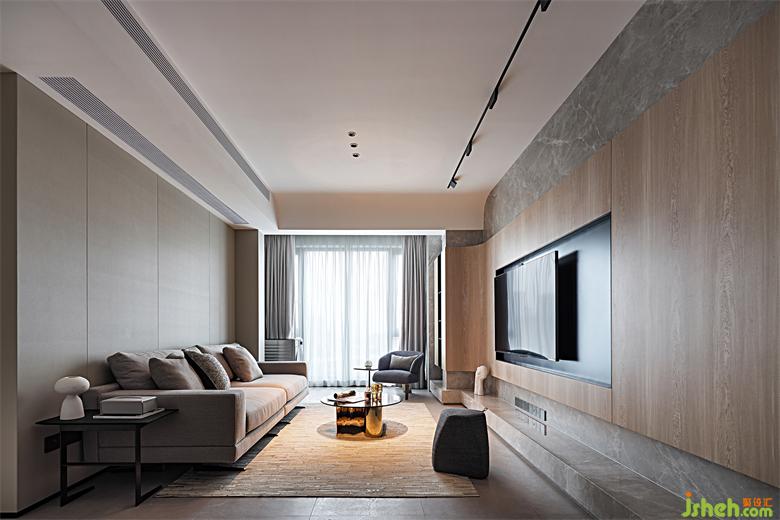 木材的選擇是本案一大特色,由于業(yè)主自家從事木作行業(yè),這個(gè)得天獨(dú)厚的資源必須給安排上!設(shè)計(jì)師選擇現(xiàn)代直紋木皮代替原始樹木紋理,大面積對(duì)客餐廳、過道墻面進(jìn)行裝飾,使房門自然嵌入墻面,倒成了一種天然的裝飾。家裝設(shè)計(jì)光影交錯(cuò)之下,溫馨如故。