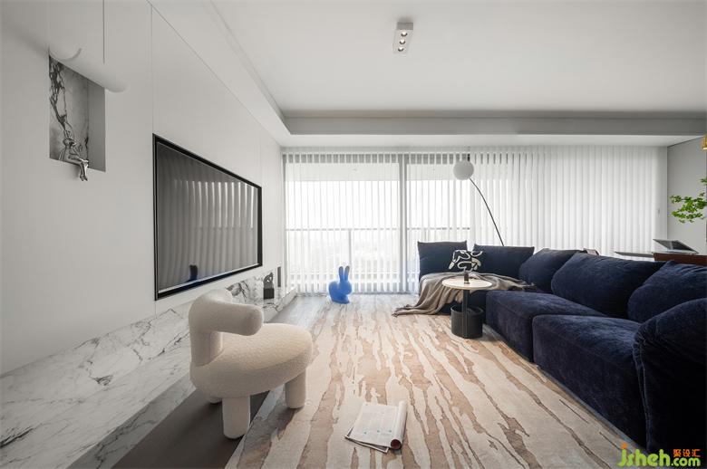 客廳搭配 Edra花瓣沙發(fā),色彩跳脫打破單調(diào),類木紋地毯蹲著藍(lán)色兔子裝置,靈動輕盈。家裝設(shè)計師考慮到家有小孩,沙發(fā)靠背扶手特別訂制,可以自由調(diào)節(jié)彎折角度,調(diào)整成向上輕輕托起的姿態(tài),也不用擔(dān)心小朋友經(jīng)常玩耍會掉下去。