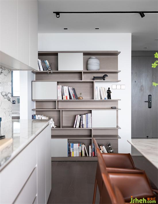 餐廚空間主打一個(gè)人性化設(shè)計(jì)。中間的操作臺(tái)可作為西廚吧臺(tái)使用,緩解廚房壓力,咖啡機(jī),沖泡奶粉都能在這搞定~左側(cè)預(yù)留整排高柜,收納能力強(qiáng)大。吊柜進(jìn)深淺于地柜,開(kāi)關(guān)使用不易碰頭,也增加了空間的層次感。家裝設(shè)計(jì)師無(wú)拉手設(shè)計(jì)極簡(jiǎn)干凈,地柜L型拉手和U型槽,美觀靈動(dòng)使用方便,也不擔(dān)心小孩被把手磕碰。