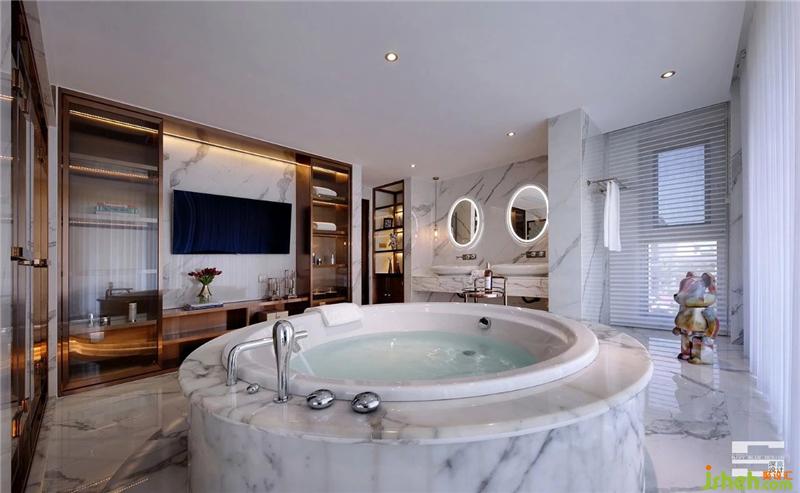 與傳統(tǒng)的桑拿房不同,在設(shè)計(jì)上,我們利用間隔全木橫飾面打造一個(gè)時(shí)尚又實(shí)用的家庭桑拿房,橫木飾面在視覺上不僅延伸空間,增加了空間的柔和度,工作完后,與家人一起蒸桑拿,緩解工作中的疲勞與壓力,讓身體達(dá)到一種放松、舒適的狀態(tài)。