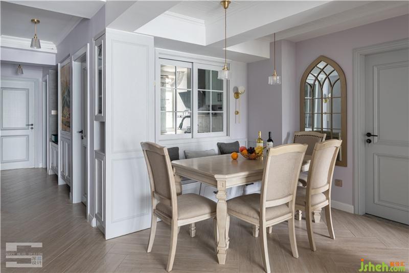 餐廳和廚房之間改了一面墻做半窗,房間門口的過道做成了餐廳,這樣既合理的利用了空間,又增加了采光,增加家庭互動性。