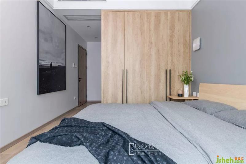 步入主臥,引入眼簾的是業(yè)主自己的一幅大幅黑白攝影作品,放佛在訴說(shuō)“我們都在路上,并且熱愛(ài)生活”。室內(nèi)設(shè)計(jì)師
